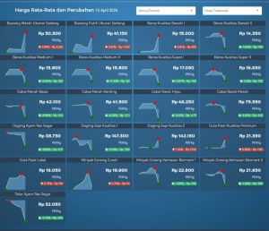 Majalahtani.com – Rata-rata harga pangan nasional pada Kamis, 16 April 2026 menunjukkan tren kenaikan pada sejumlah komoditas utama, terutama kelompok hortikultura dan protein hewani.